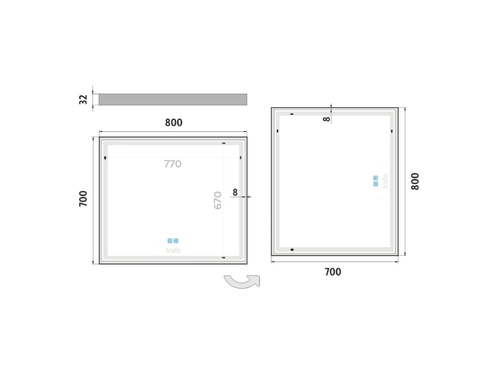 Obdélníkové zrcadlo s rámem s ostrými rohy a celoobvodovým svícením pro dokonalé a rovnoměrné osvětlení. Zrcadlo se ovládá dvěma dotykovými podsvícenými senzory, které umožňují změnu barvy světla, nastavení intenzity osvětlení (stmívání) a disponují paměťovou funkcí pro uložení posledního nastavení. Kromě toho lze zrcadlo ovládat i pomocí nástěnného vypínače, což zvyšuje jeho flexibilitu a pohodlí použití. Pro dosažení kvalitního a rovnoměrného svícení je použit akrylový difuzor, který zajišťuje měkký a harmonický rozptyl světla bez viditelných bodových zdrojů. LED diody jsou vkusně integrovány do rámu spolu s difuzorem, což přispívá k elegantnímu a čistému vzhledu zrcadla. Zrcadlo využívá nejmodernější LED čipy SMD 2835, které jsou známé svou vysokou svítivostí, energetickou úsporností a dlouhou životností. Hustota čipů 96+96/m (192/m), životnost 50 000 hodin. Parametry LED: Survival Factor = 1, Lumen Maintenance Factor 0,99 a Flicker Metric 0,02, pak zajišťují stabilní, bezblikavé a dlouhodobě konzistentní osvětlení. Nosná konstrukce zrcadla je vyrobena z masivního hliníkového rámu o rozměrech 32x19 mm, který zajišťuje vysokou pevnost a stabilitu. Stejně tak je z hliníku vyroben kryt zdroje a všech elektronických součástek. Sklo o tloušťce 5 mm je opatřeno bezpečnostní fólií, která chrání před zraněním v případě rozbití. Zrcadlo navíc disponuje stupněm ochrany proti vlhkosti IP44, což zaručuje spolehlivost i v prostředí s vyšší vlhkostí. Zrcadlo splňuje všechny české normy a je opatřeno českým certifikátem CE, který zaručuje jeho kvalitu a bezpečnost. Nabízí flexibilní možnosti upevnění, a to jak vertikálně, tak horizontálně, a je dodáváno včetně kompletní montážní sady a kabelové spojky s ochranou IP44. Pro zajištění bezpečné přepravy je zrcadlo pečlivě zabaleno a připraveno k expedici prostřednictvím kurýrní služby. Ovládání: Dotykové senzory + možnost ovládání nástěnným vypínačem Nastavení barvy světla: Ano Barva světla: Nastavitelná v rozsahu 3000–6500 K (od teplé po studenou bílou) Funkce stmívání: Plynulé stmívání Paměť nastavení: Automatická paměť nastavení Konstrukce svícení: K rovnoměrnému rozptylu světla zrcadlo disponuje akrylovým matovaným difuzorem Integrace LED: Led diody jsou zabudované v rámu LED čip: Nejmodernější LED čipy SMD 2835 LED pásek - hustota čipů: 192/m (96+96/m) Životnost LED čipů: Až 50 000 hodin Kvalita osvětlení LED: Survival Factor = 1; Lumen maintenance factor = 0,99; Flicker metric = 0,02 Materiál: Zrcadlové sklo, hliník Materiál konstrukce: Rám zrcadla a kryt zdroje jsou vyrobeny z hliníku Tloušťka skla: 5 mm Ochrana při rozbití: Bezpečnostní fólie Stupeň ochrany: IP 44 Certifikace: Český certifikát CE Umístění: Montáž na stěnu Možnost upevnění vertikálně i horizontálně Montážní příslušenství: Součástí balení je montážní sada a kabelová spojka s ochranou IP 44 Obal: Zabalené pro přepravu kurýrní službou Napětí: Vstupní napětí 220-240 V Výstupní napětí 12 V Příkon: 44 W, světelný tok: 3168 lm Rozměr: v: 700 mm š: 37 mm d: 800 mm Hmotnost: 9,6 kgDoplňkové parametry