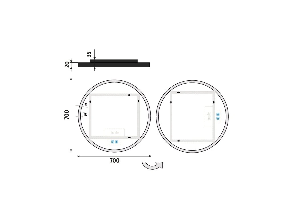 Kulaté zrcadlo s rámem a s celoobvodovým podsvícením pro dokonalé a rovnoměrné osvětlení. Zrcadlo se ovládá dvěma dotykovými podsvícenými senzory, které umožňují změnu barvy podsvícení, nastavení intenzity osvětlení (stmívání) a disponují paměťovou funkcí pro uložení posledního nastavení. Kromě toho lze zrcadlo ovládat i pomocí nástěnného vypínače, což zvyšuje jeho flexibilitu a pohodlí použití. Ke zlepšení kvality podsvícení je použit difuzor z akrylového skla, který zajišťuje rovnoměrný a měkký rozptyl světla. LED diody jsou elegantně integrovány přímo v difuzoru, což zvyšuje intenzitu světla a zaručuje jeho jednotné rozprostření po celé ploše podsvícení. Výsledkem je příjemné a rovnoměrné osvětlení bez viditelných bodových zdrojů. Zrcadlo využívá nejmodernější LED čipy SMD 2835, které jsou známé svou vysokou svítivostí, energetickou úsporností a dlouhou životností. Hustota čipů 96+96/m (192/m), životnost 50 000 hodin. Parametry LED: Survival Factor = 1, Lumen Maintenance Factor 0,99 a Flicker Metric 0,02, pak zajišťují stabilní, bezblikavé a dlouhodobě konzistentní osvětlení. Nosná konstrukce zrcadla je vyrobena z masivního hliníkového rámu o rozměrech 32x19 mm, který zajišťuje vysokou pevnost a stabilitu. Stejně tak je z hliníku vyroben kryt zdroje a všech elektronických součástek. Sklo o tloušťce 5 mm je opatřeno bezpečnostní fólií, která chrání před zraněním v případě rozbití. Zrcadlo navíc disponuje stupněm ochrany proti vlhkosti IP44, což zaručuje spolehlivost i v prostředí s vyšší vlhkostí. Zrcadlo splňuje všechny české normy a je opatřeno českým certifikátem CE, který zaručuje jeho kvalitu a bezpečnost. Nabízí flexibilní možnosti upevnění, a to jak vertikálně, tak horizontálně, a je dodáváno včetně kompletní montážní sady a kabelové spojky s ochranou IP44. Pro zajištění bezpečné přepravy je zrcadlo pečlivě zabaleno a připraveno k expedici prostřednictvím kurýrní služby. Ovládání: Dotykové senzory + možnost ovládání nástěnným vypínačem Nastavení barvy podsvícení: Ano Barva podsvícení: Nastavitelná v rozsahu 3000–6500 K (od teplé po studenou bílou) Funkce stmívání: Plynulé stmívání Paměť nastavení: Ano Konstrukce podsvícení: K rovnoměrnému rozptylu světla zrcadlo disponuje difuzorem z akrylového skla Integrace LED: LED diody jsou integrovány přímo v difuzoru LED čip: Nejmodernější LED čipy SMD 2835 LED pásek - hustota čipů: 192/m (96+96/m) Životnost LED čipů: Až 50 000 hodin Kvalita osvětlení LED: Survival Factor = 1; Lumen maintenance factor = 0,99; Flicker metric = 0,02 Materiál: Zrcadlové sklo, hliník Materiál konstrukce: Rám zrcadla a kryt zdroje jsou vyrobeny z hliníku Tloušťka skla: 5 mm Ochrana při rozbití: Bezpečnostní fólie Stupeň ochrany: IP 44 Certifikace: Český certifikát CE Umístění: Montáž na stěnu Možnost upevnění vertikálně i horizontálně Montážní příslušenství: Součástí balení je montážní sada a kabelová spojka s ochranou IP 44 Obal: Zabalené pro přepravu kurýrní službou Napětí: Vstupní napětí 220-240 V Výstupní napětí 12 V Příkon: 33 W, světelný tok: 2376 lm Rozměr: v: 700 mm š: 35 mm d: 700 mm Hmotnost: 8,05 kgDoplňkové parametry