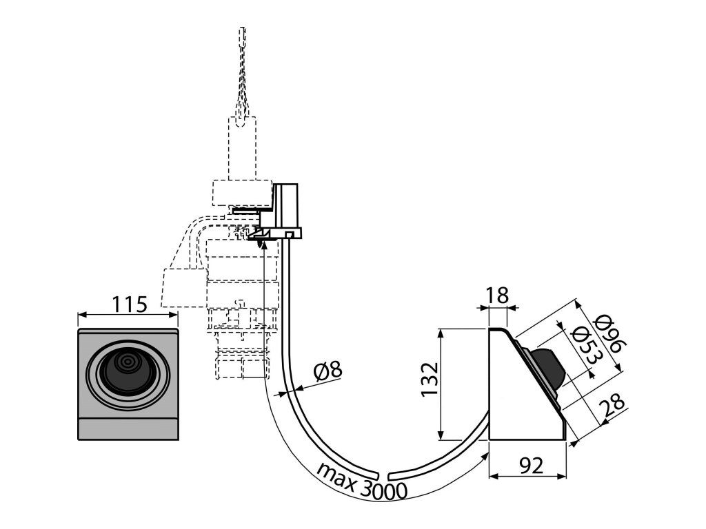 Oddálené pneumatické splachování nožní, kov, zabudování: na zeď MPO13