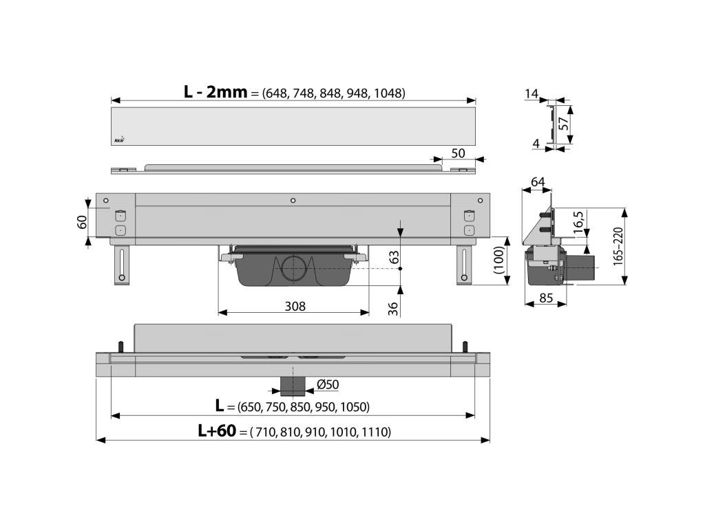 Celková stavební výška - 165 - 220 - mm