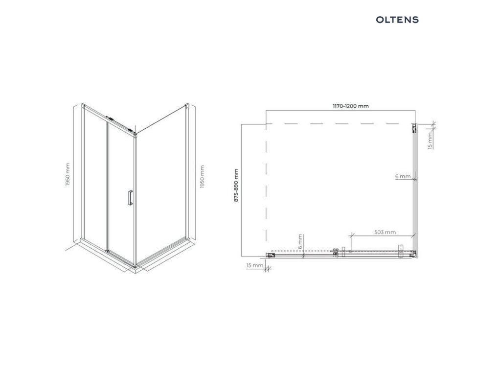 Oltens Breda sprchový kout 120 x 90 cm, obdélníkový, matná černá/průhledné sklo 20226300