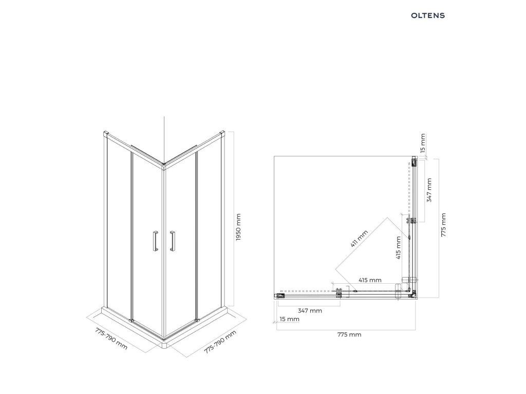 Oltens Breda sprchový kout 80x80 cm, čtvercový, chrom/průhledné sklo 20005100Doplňkové parametry