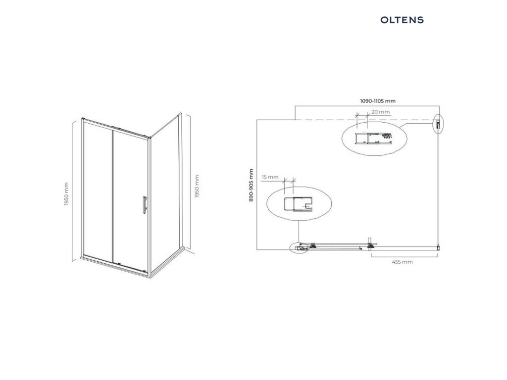 Oltens Fulla sprchový box 110 x 90 cm, obdélníkový, dveře se zástěnou 20208100Doplňkové parametry
