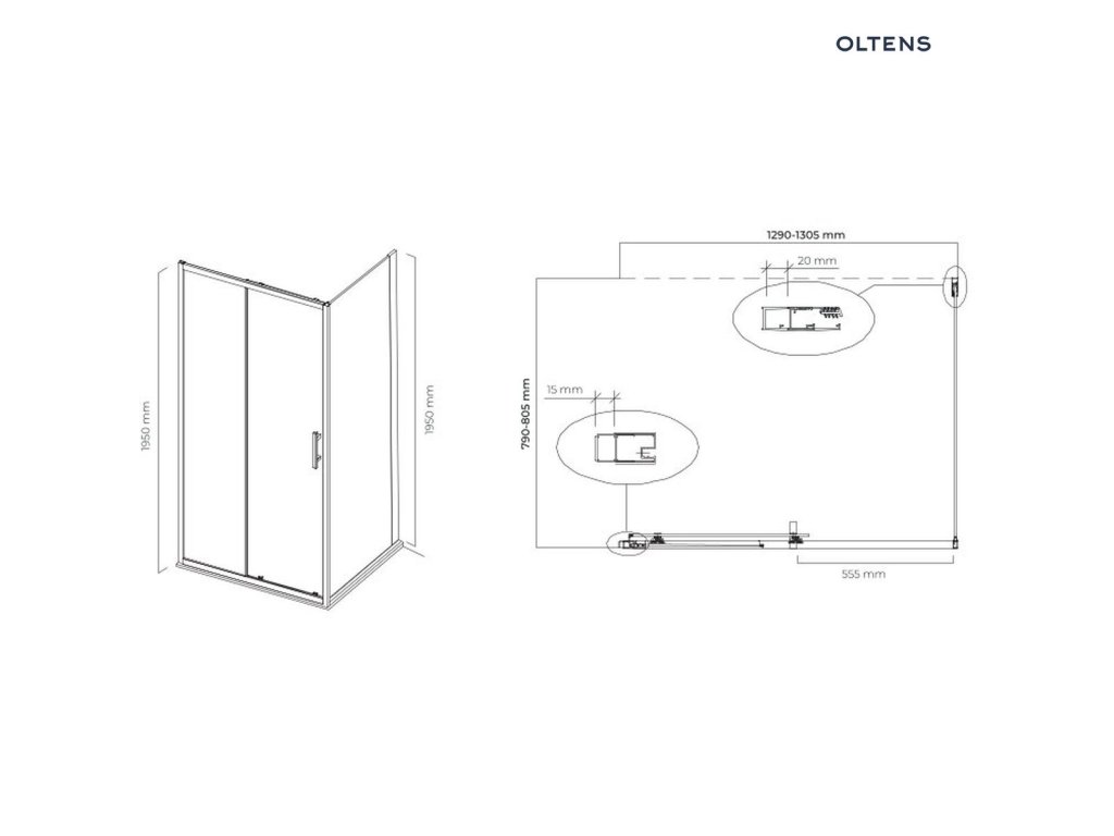 Oltens Fulla sprchový box 130 x 80 cm, obdélníkový, dveře se zástěnou 20209100Doplňkové parametry