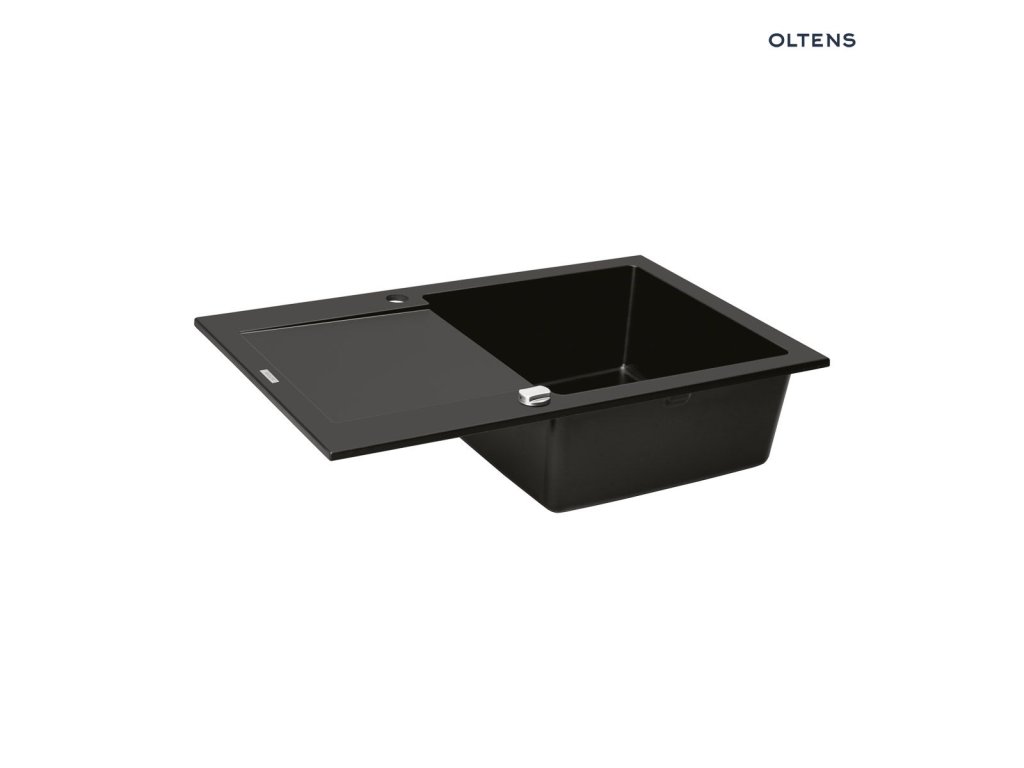 Oltens Gravan žulový jednokomorový dřez s krátkým odkapávačem 79 x 50 cm, matná černá 72100300