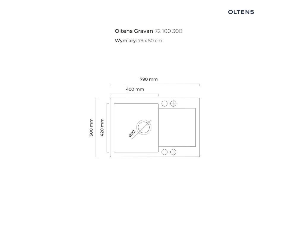 Oltens Gravan žulový jednokomorový dřez s krátkým odkapávačem 79 x 50 cm, matná černá 72100300Doplňkové parametry