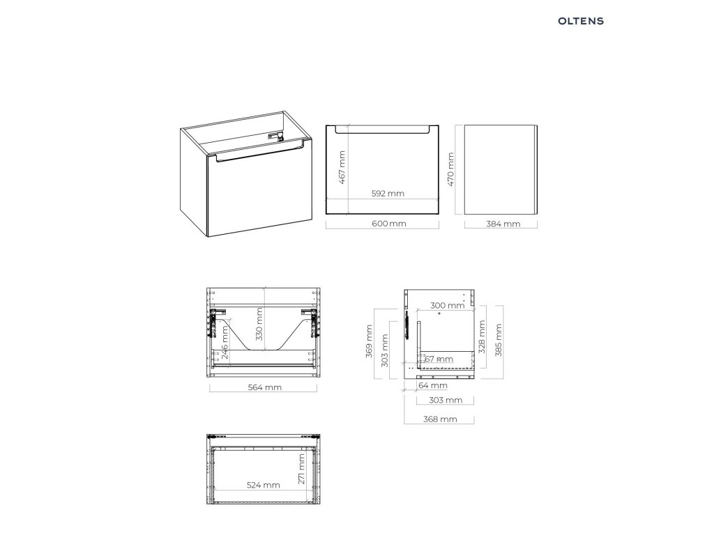 Oltens Jog závěsná skříňka pod umyvadlo 60 cm, lesklá bílá 60000000Doplňkové parametry