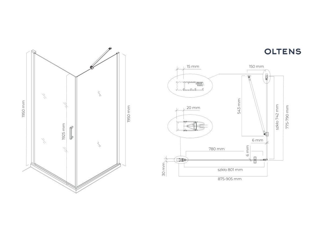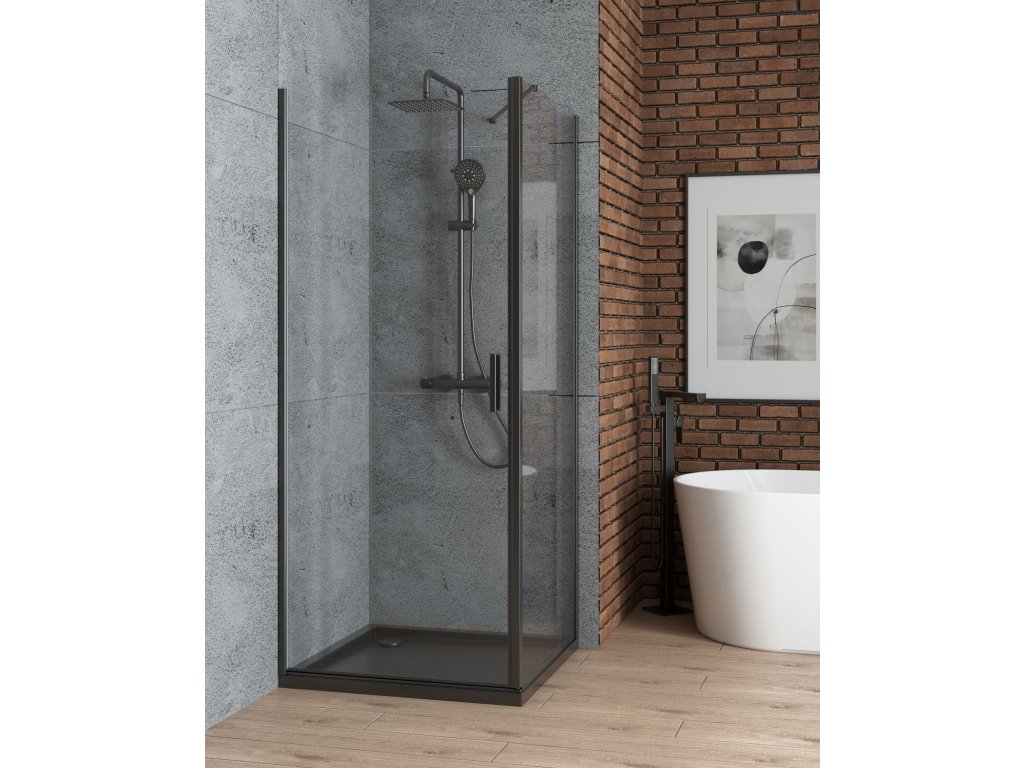 Oltens Rinnan sprchový kout 90x80 cm, obdélníkový, dveře se zástěnou, matná černá/průhledné sklo, 20216300Doplňkové parametry