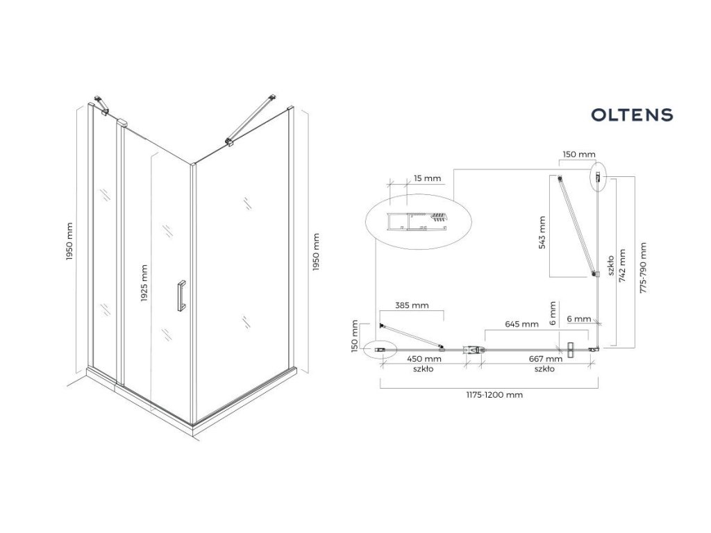 Oltens Verdal sprchový kout 120x80 cm, obdélníkový, dveře se zástěnou, matná černá/průhledné sklo, 20210300Doplňkové parametry