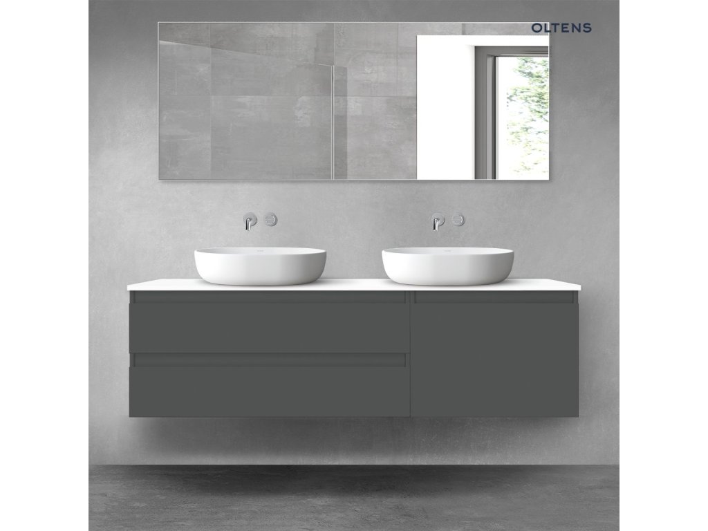Oltens Vernal sada koupelnového nábytku 160 cm s horní deskou, matná grafitová/lesklá bílá 68341400