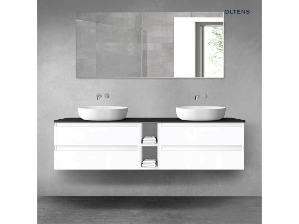 Oltens Vernal sada koupelnového nábytku 180 cm s horní deskou, lesklá bílá/matná černá 68632000