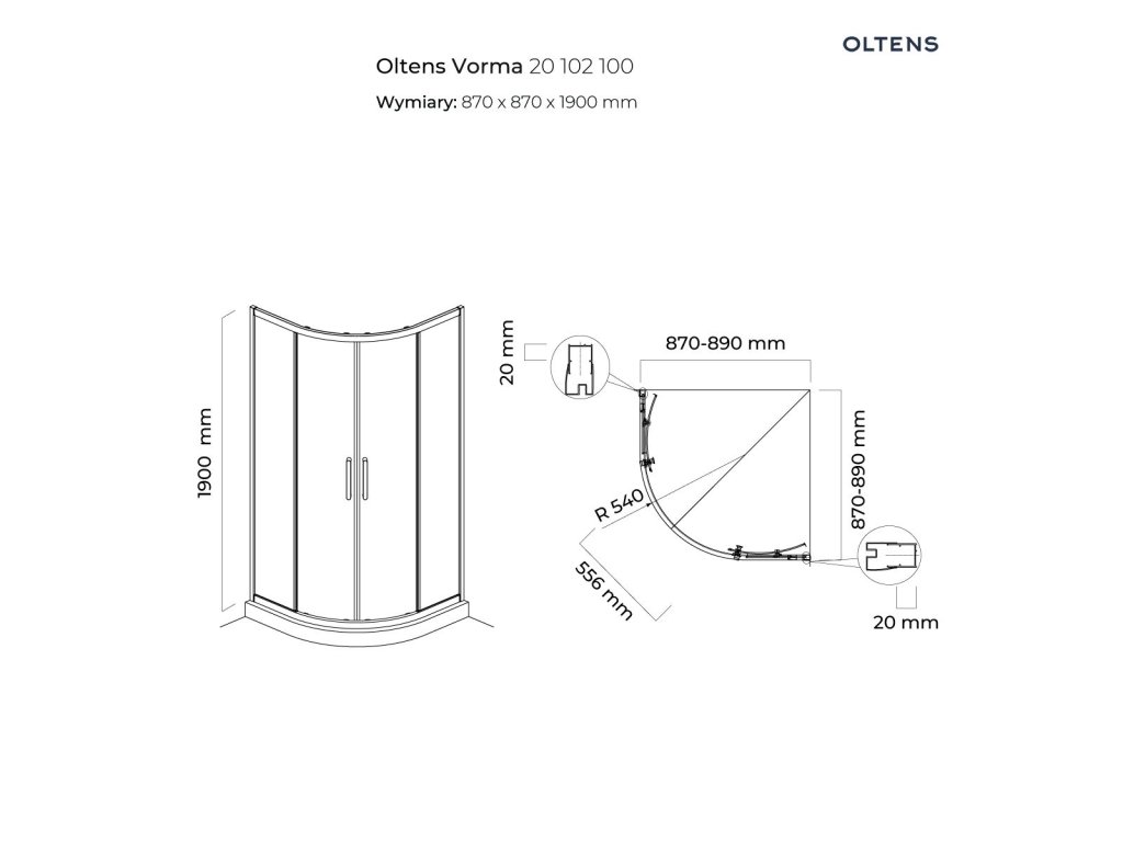 Oltens Vorma sprchový box 90 x 90 cm, půlkruhový 20102100Doplňkové parametry
