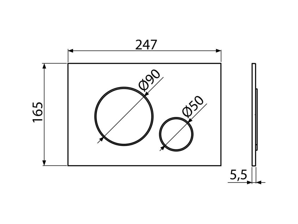 Tlačítko minimálně vystupuje nad obklad díky tlouštce pouhých 5,5 mm