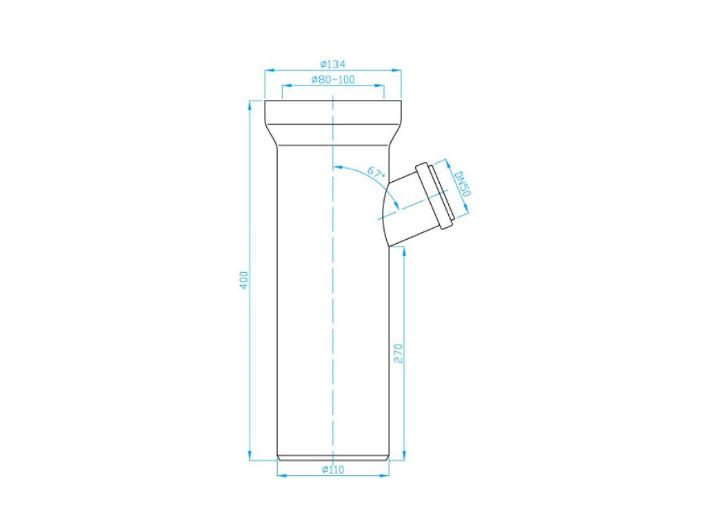 Plast Brno WC dopojení - přímé 400 s přípojkou DN 50 - KP4500U