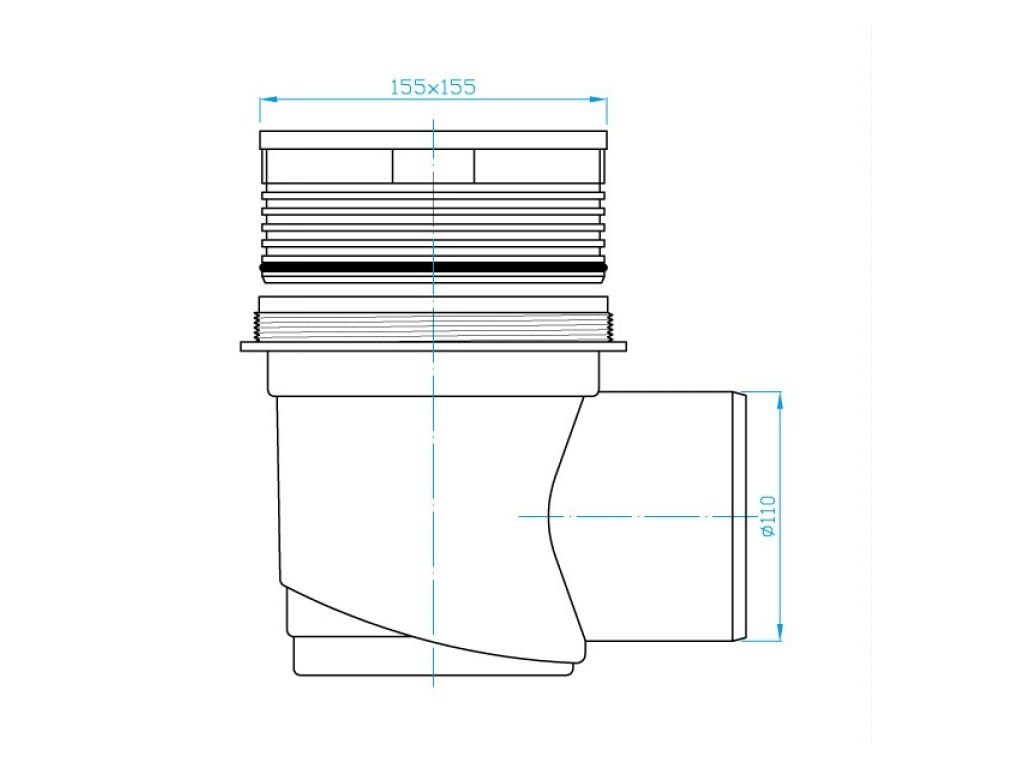 Podl.vpusť 110 boční 15x15 se suchou klapkou, mřížka nerez (Plast Brno) - SEBAN01