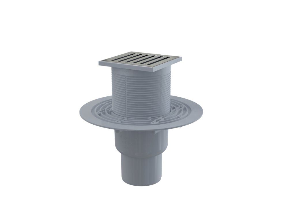 Podlahová vpust 105×105/50/75 mm přímá, mřížka nerez, vodní zápachová uzávěra APV203