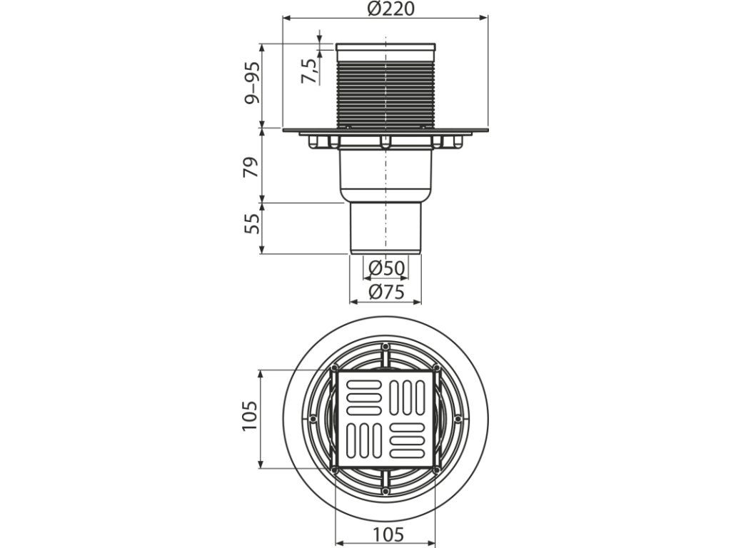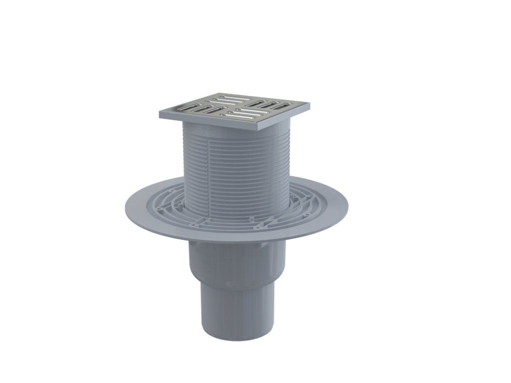 Podlahová vpust 105×105/50/75 mm přímá, mřížka nerez, vodní zápachová uzávěra APV2311