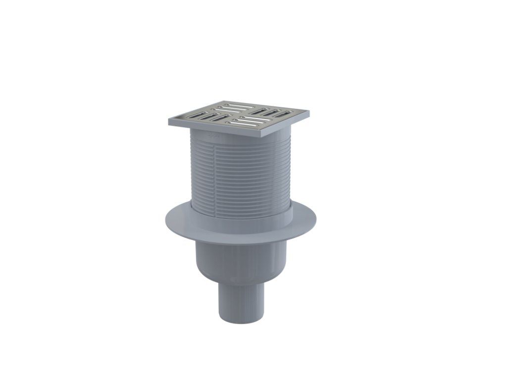 Podlahová vpust 105×105/50 mm přímá, mřížka nerez, vodní zápachová uzávěra APV2