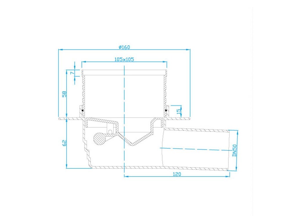 Podlahová vpusť 50 boční nerez 10x10 s gravitační klapkou (Plast Brno) SI50G01