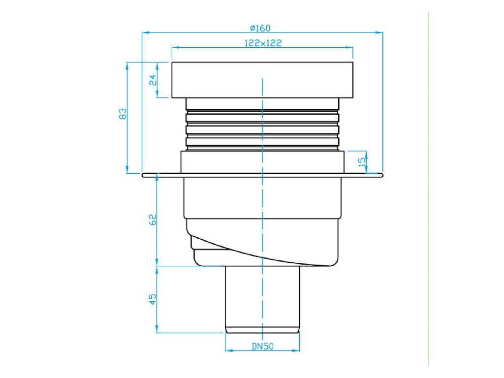 Podlahová vpusť 50 spodní pro vložení dlažby 101x101mm Plast Brno SI5PD00