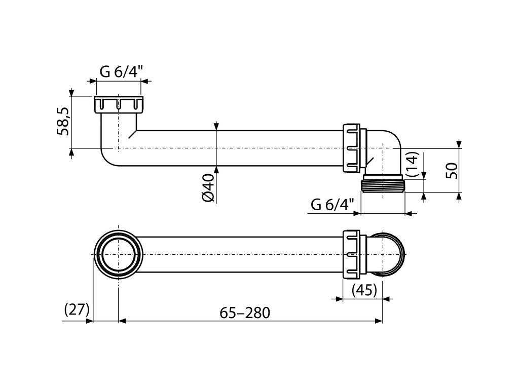 Prostorově úsporné dopojení G 6/4" × G 6/4" pro dřezové sifony P109