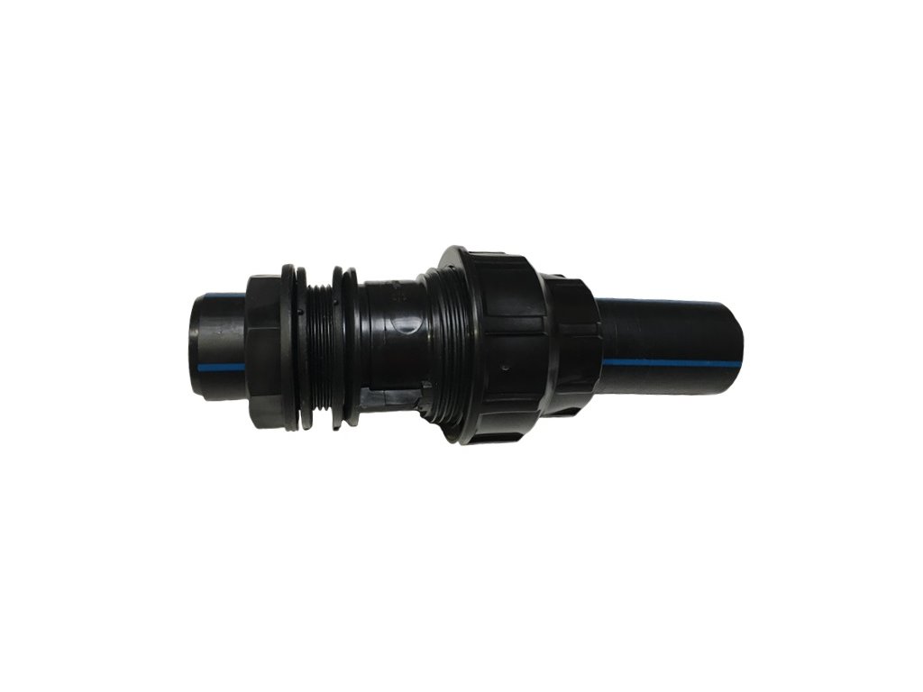 Plastové svěrné průchodky pro vodoměrné šachty a nádrže s maximální tloušťkou stěny 8 mm, pro PE trubky. Průchodka utěstní průchod trubky stěnou vodoměrné šachty a zabrání vniknutí okolní vody do nádrže. Průchodka je opatřena svěrným kroužkem a zabraňuje axiálnímu posunu trubky. Umožňuje protažení trubky do vnitřku šachty bez jejího přerušeníPoužití: pro průchod trubky ze všech druhů polyetylenu (PEHD, PEMD, PELD) dle DIN 8074, ISO 4427 stěnou vodoměrné šachty, nádrže a podobně.