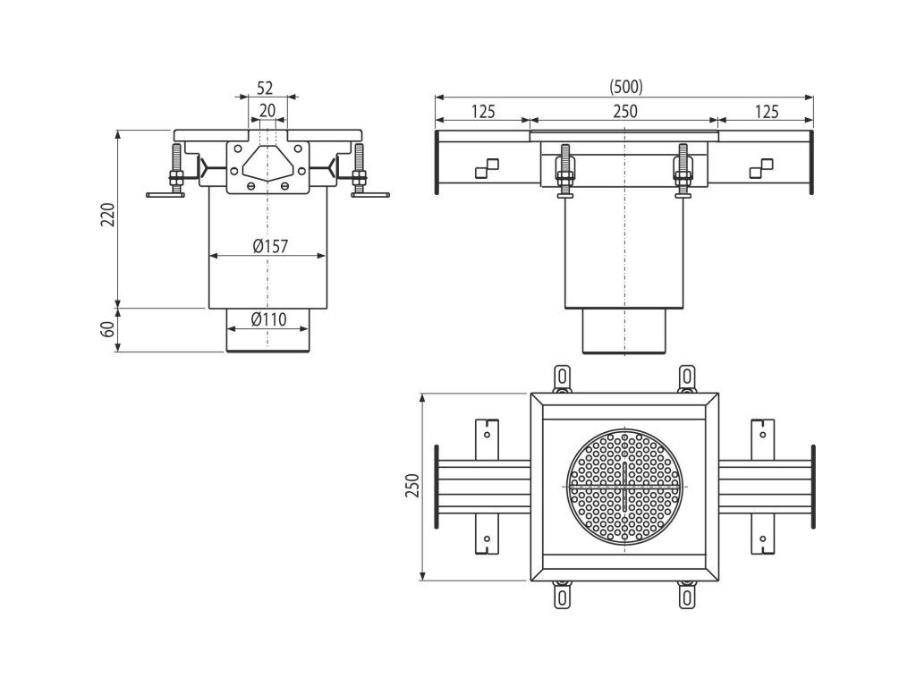 Průmyslová štěrbinová vpust průběžná 250×250, nerez AISI 304 APR7-2211-20