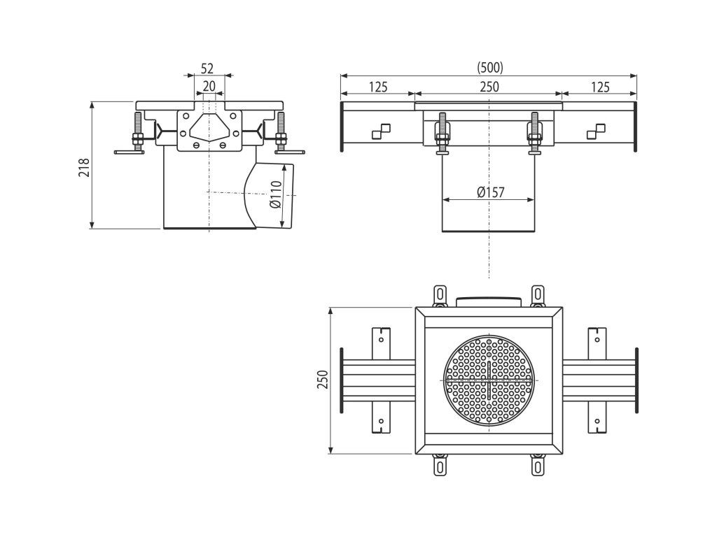 Průmyslová štěrbinová vpust průběžná 250×250, nerez AISI 316L APR7-1221-20