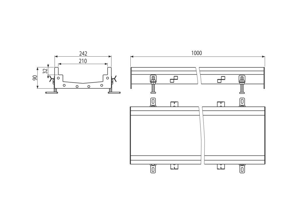 Pevné ukotvení v betonu pomocí jednoduše nastavitelných noh a bočních kotev