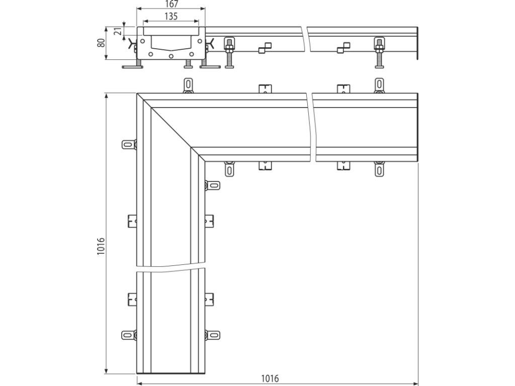 Průmyslový krabicový žlab rohový 1 m, nerez AISI 304 APR6-0211-135R