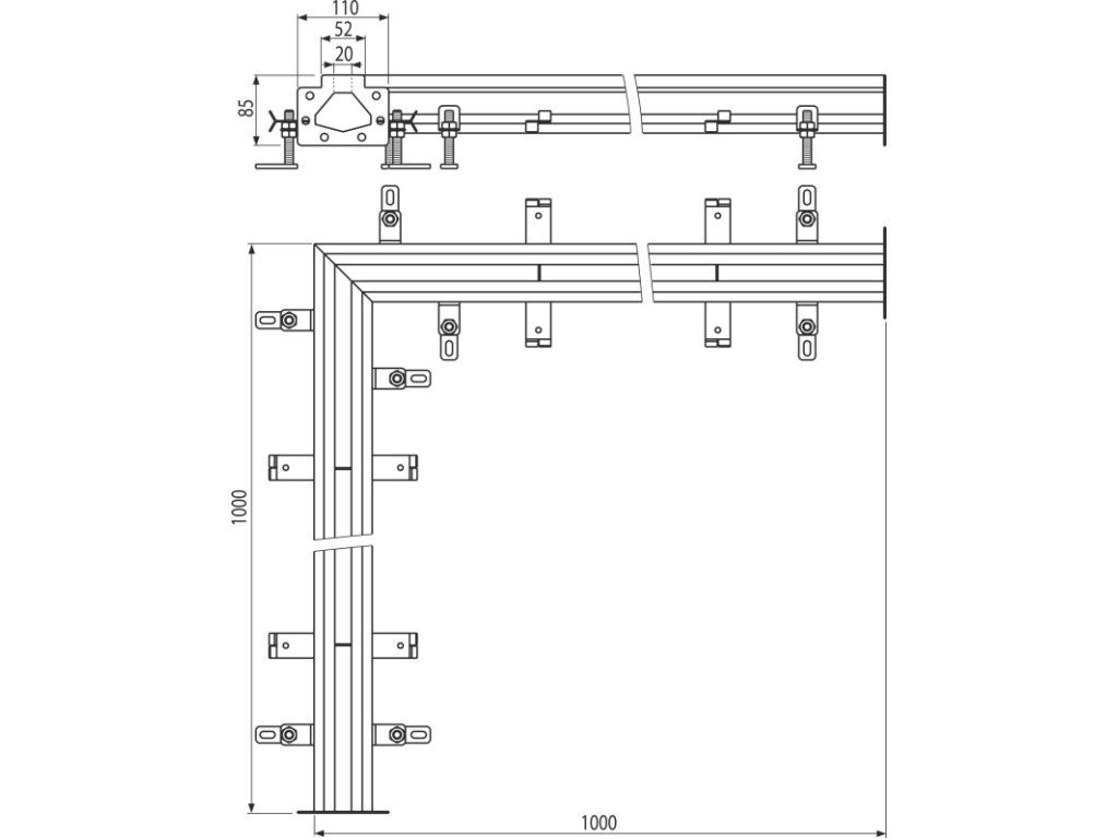 Pevné ukotvení v betonu pomocí jednoduše nastavitelných noh a bočních kotev