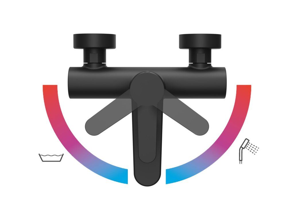 Vanová baterie Puri má speciální rotační kartuš s přepínáním vana/sprcha. Pohybem páky doprava (sprcha), či doleva (vana) se reguluje pouze teplota vody, nikoliv průtok vody, který je stabilní.