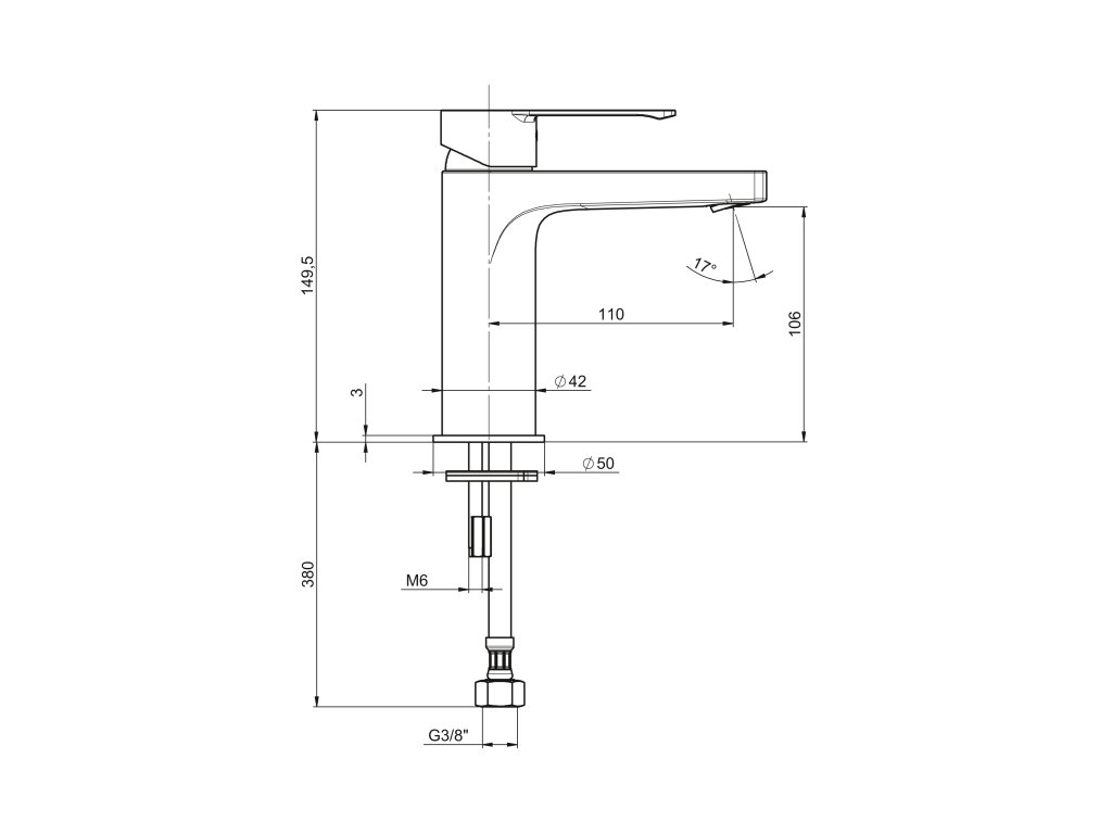 PURE baterie chrom umyvadlová stojánková 106 mm bez výpusti