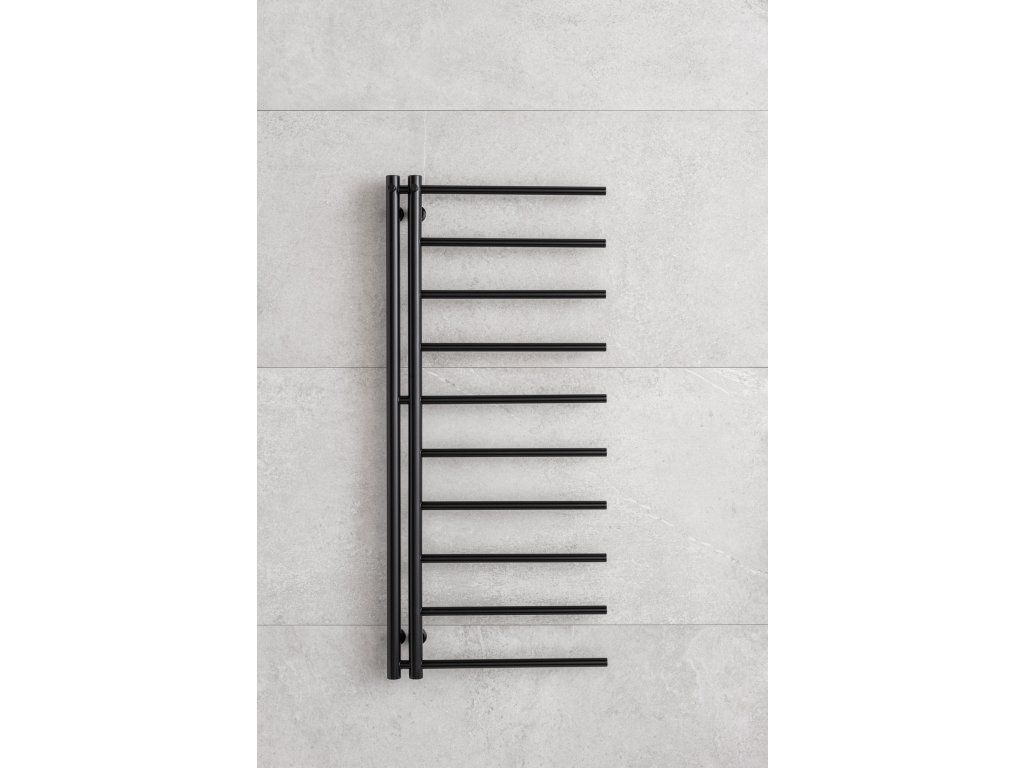 Radiátor nabízí výhodu zavěšení ručníků ze strany nebo pomocí háčků, které jsou umístěny na 2 vertikálních trubkách.