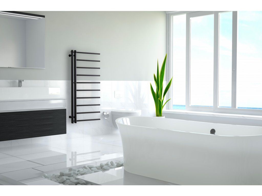 Radiátor nabízí výhodu zavěšení ručníků ze strany nebo pomocí háčků, které jsou umístěny na 2 vertikálních trubkách.