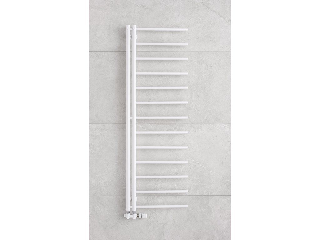 Radiátor nabízí výhodu zavěšení ručníků ze strany nebo pomocí háčků, které jsou umístěny na 2 vertikálních trubkách.