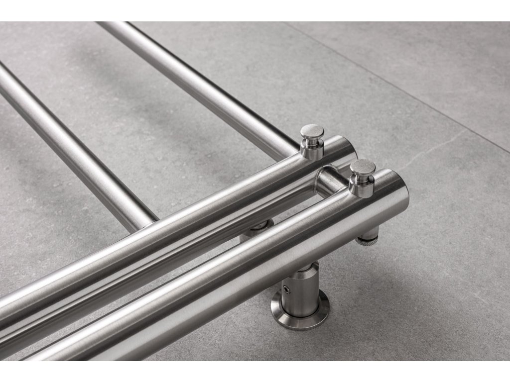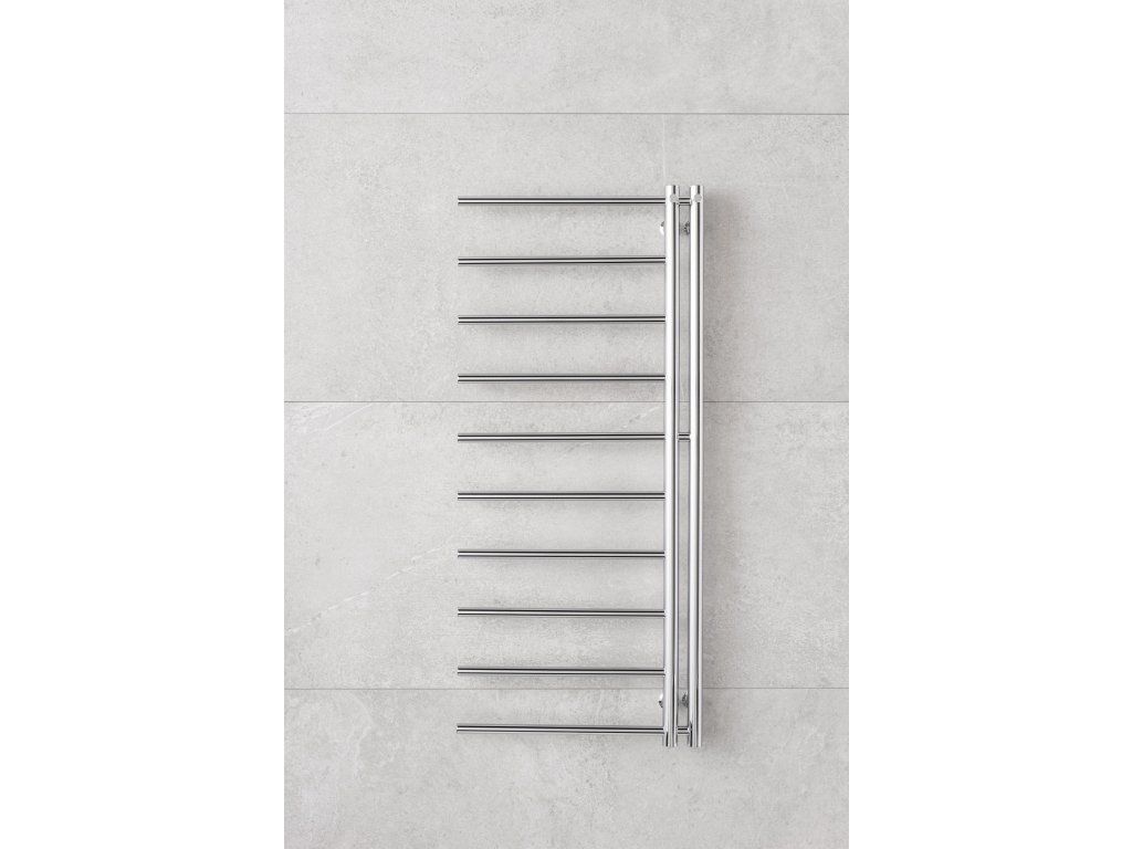 Radiátor nabízí výhodu zavěšení ručníků ze strany nebo pomocí háčků, které jsou umístěny na 2 vertikálních trubkách.
