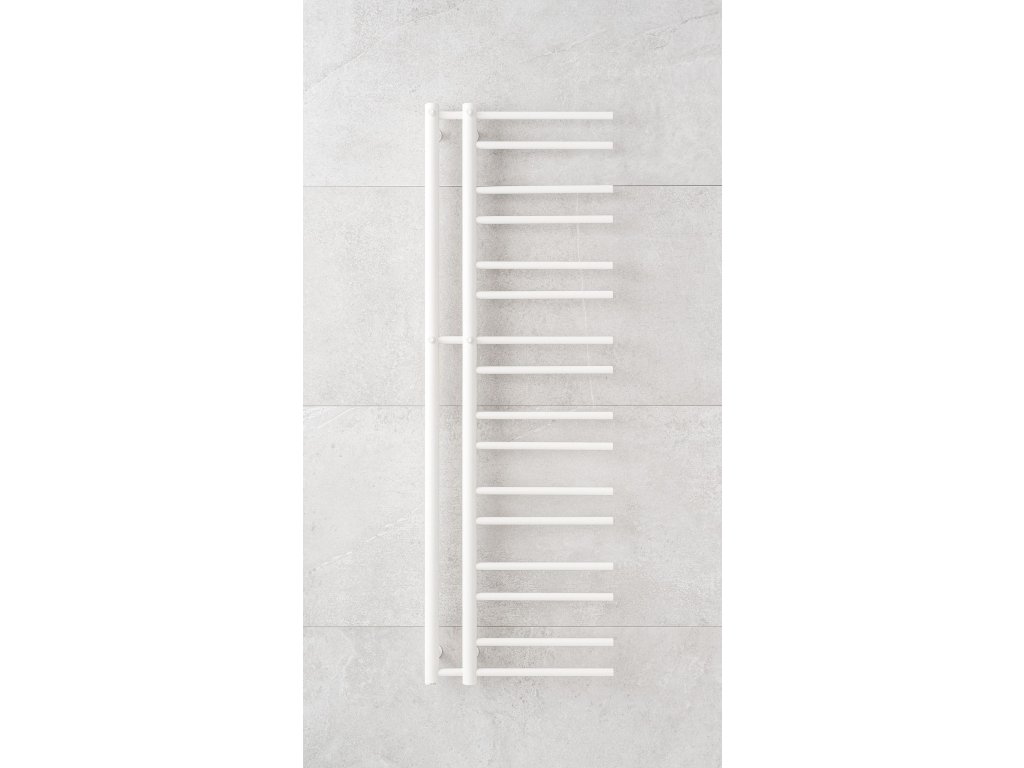 Radiátor nabízí výhodu zavěšení ručníků ze strany nebo pomocí háčků, které jsou umístěny na 2 vertikálních trubkách.