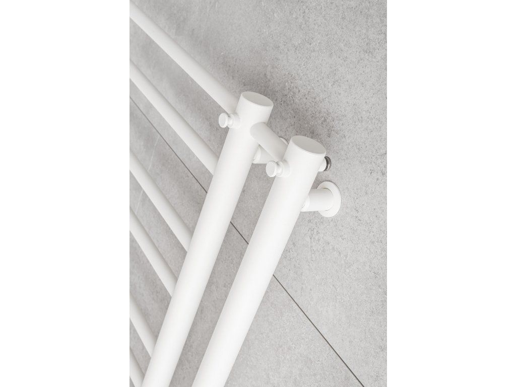 Radiátor nabízí výhodu jednoduchého zavěšení ručníků ze strany nebo pomocí háčků, které jsou umístěny na 2 vertikálních trubkách.