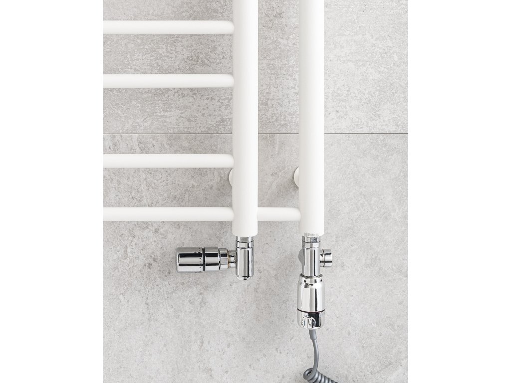 Radiátor nabízí výhodu jednoduchého zavěšení ručníků ze strany nebo pomocí háčků, které jsou umístěny na 2 vertikálních trubkách.