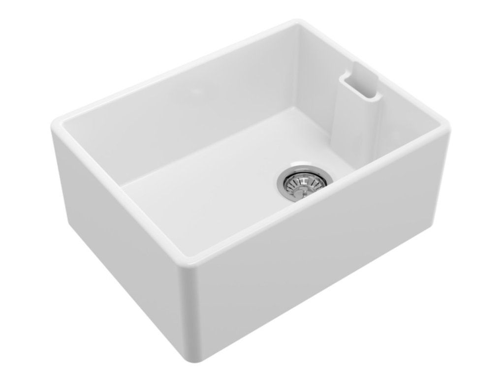 - zářivě bílý keramický dřez ve vysokém lesku