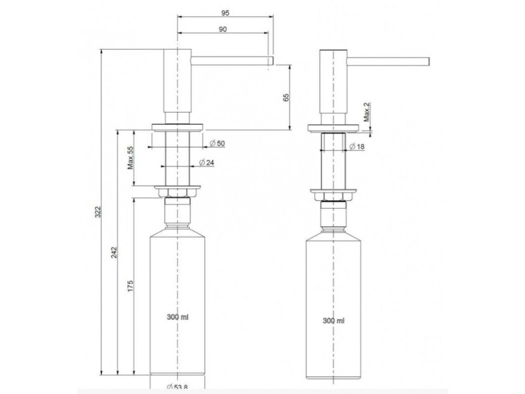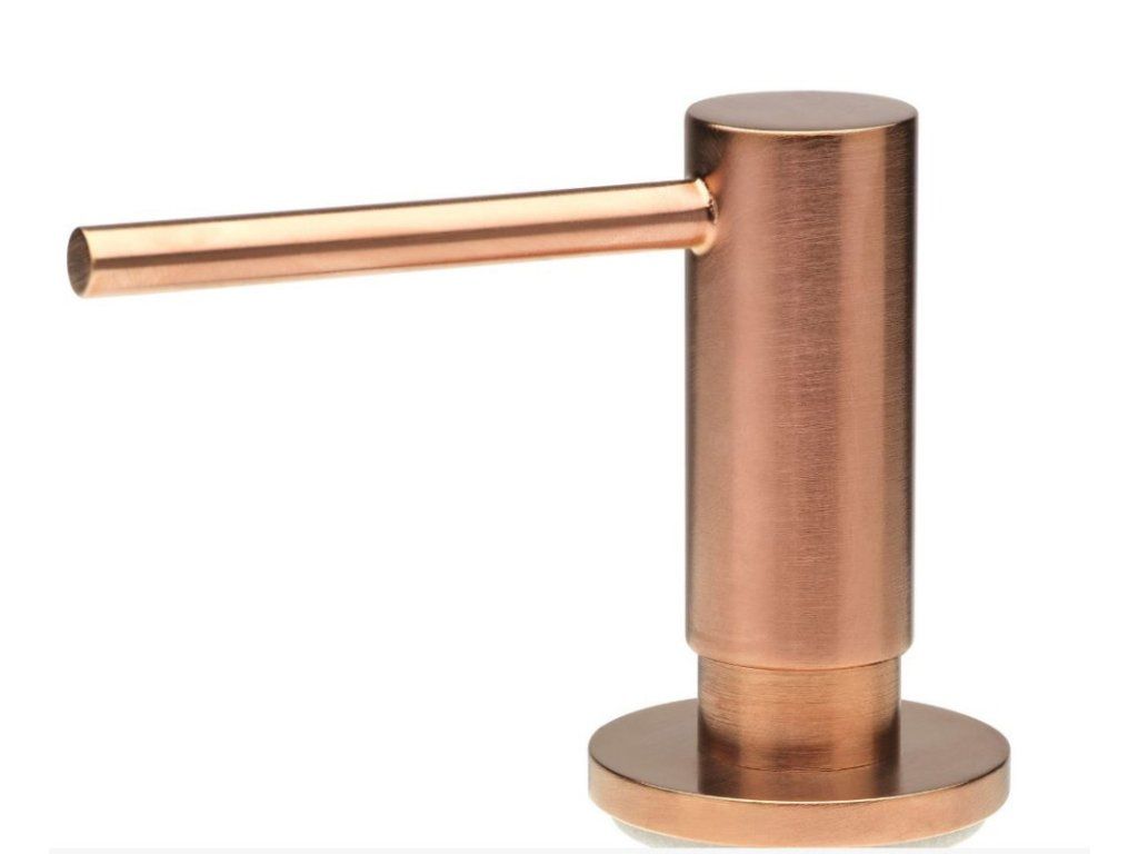 Dávkovač saponátu Reginox Copper (R34811) je určen pro zapuštění. Dávkovače na zapuštění fungují jako neviditelná nádrž na čistící prostředky. Nádobka je vždy skryta pod úrovní desky a nezabírá tolik potřebné místo na pracovní ploše.
