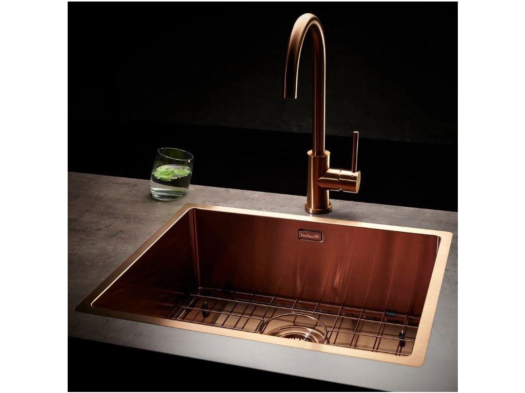 Luxusní měděný set dřezu včetně příslušenství vyrábí lídr na trhu mezi dřezy prestižní firma Reginox. Společnost Reginox je na trhu více než 39 let, klade důraz na design, kvalitu i životní prostředí. Nerezový dřez Miami 500 Copper / měď (R30738) je součástí designové řady barevných dřezů Regi- colour, vyrobeny firmou Reginox z nejkvalitnějších materiálů.