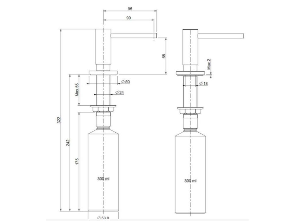 - dávkovač je určen pro: čistící prostředky, saponáty tekutá mýdla, sprchové gely, tělovou a pleťovou kosmetiku.