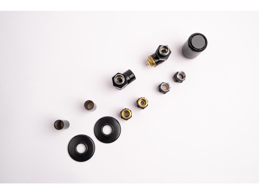 Kompletní sada obsahuje kromě ventilu také krycí rozety a svěrné šroubení pro připojení na měď 15 mm a Alupex 16 mm.