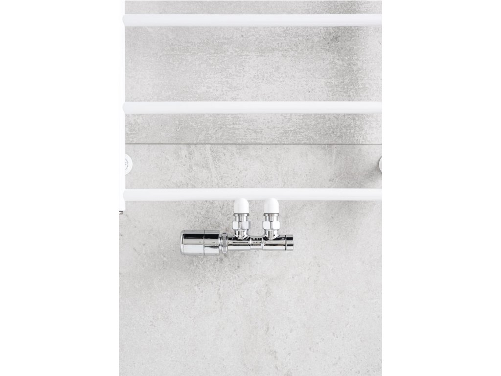 Kompletní sada obsahuje kromě ventilu také krycí rozety a svěrné šroubení pro připojení na měď 15 mm a Alupex 16 mm.