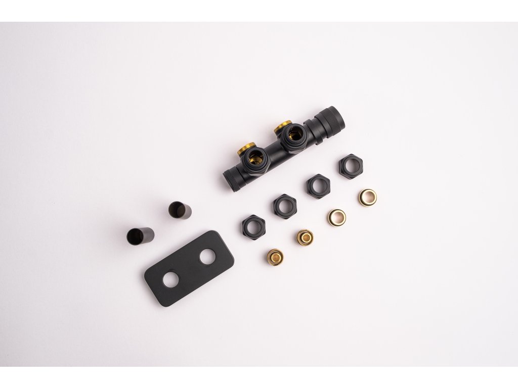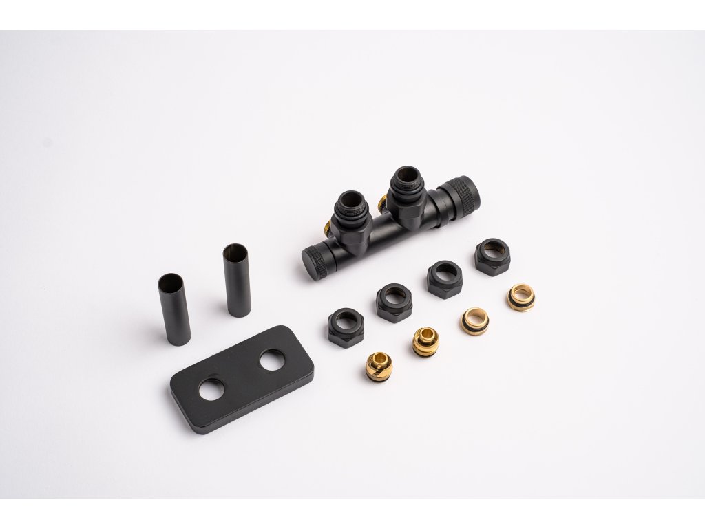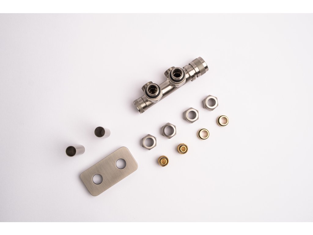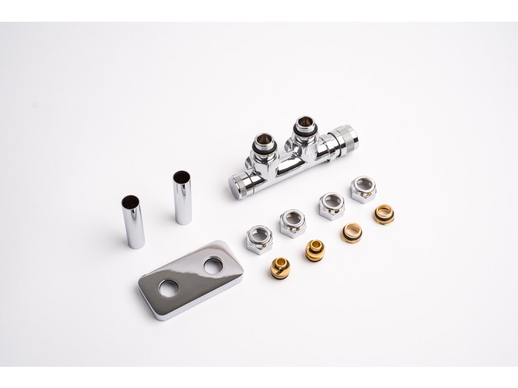 Kompletní sada kromě samotného ventilu obsahuje také krycí rozety a svěrné šroubení pro připojení na měď 15 mm a Alupex 16 mm.