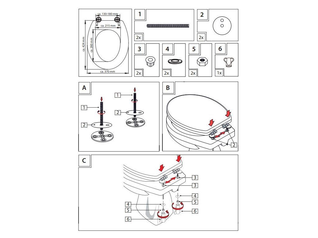 - Obsahuje kompletní montážní materiál pro rychlou a snadnou instalaci záchodového sedátka