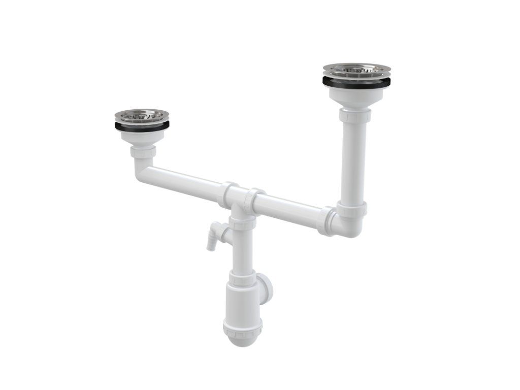 Sifon pro dvoudřez DN 40/50 dvouúrovňový s přípojkou Ø 17–23 mm a nerezovými mřížkami Ø 115 mm A454P