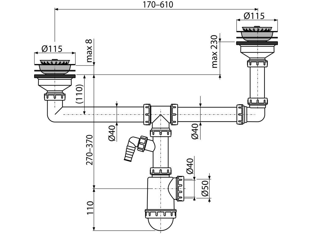 Použití:Pro dvoudílné dřezy s rozdílnou hloubkou